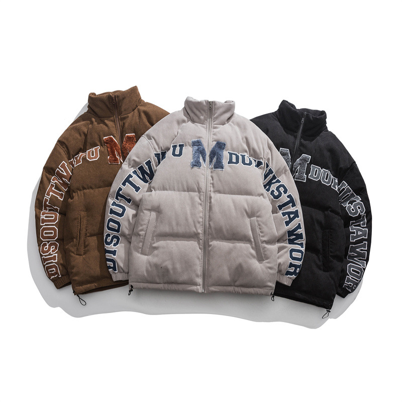Men's Winter Coat Fake Two-piece Hooded Letter-print Bread Coat